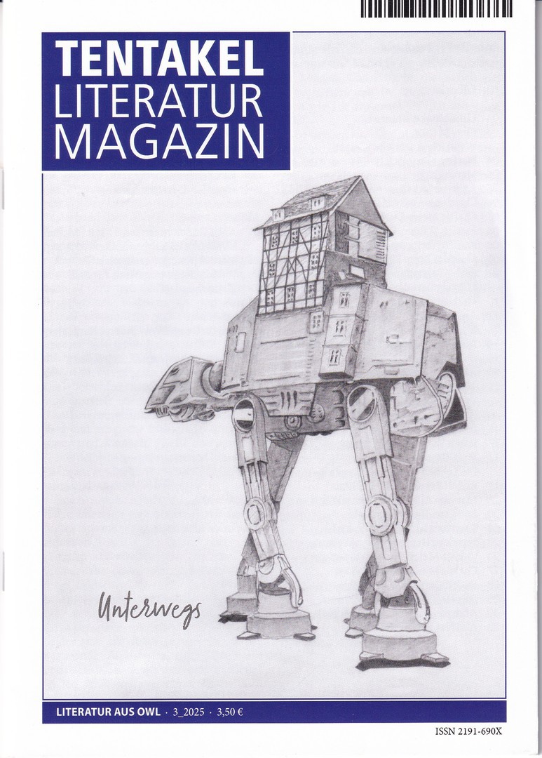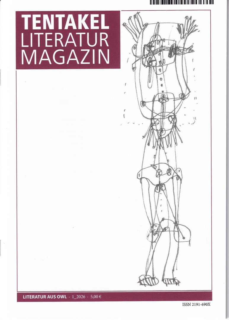 Das Literaturmagazin "Tentakel" wird seit 2008 herausgegeben und veröffentlicht Literatur und übersetzte Literatur, die in Osrwestfalen entstanden ist, sowie Werke der bildenden Kunst aus Ostwestfalen. Das Magazin erscheint dreimal im Jahr (Januar, Mai, September), kostet 5,-€ und kann abonniert werden unter redaktion_tentakel@yahoo.de, oder indem Sie 18,-€ auf das Kto IBAN DE35 480501610070669684 (Matthias Bronisch) bei der Sparkasse Bielefeld überweisen, bitte immer mit Ihrer Adresse!