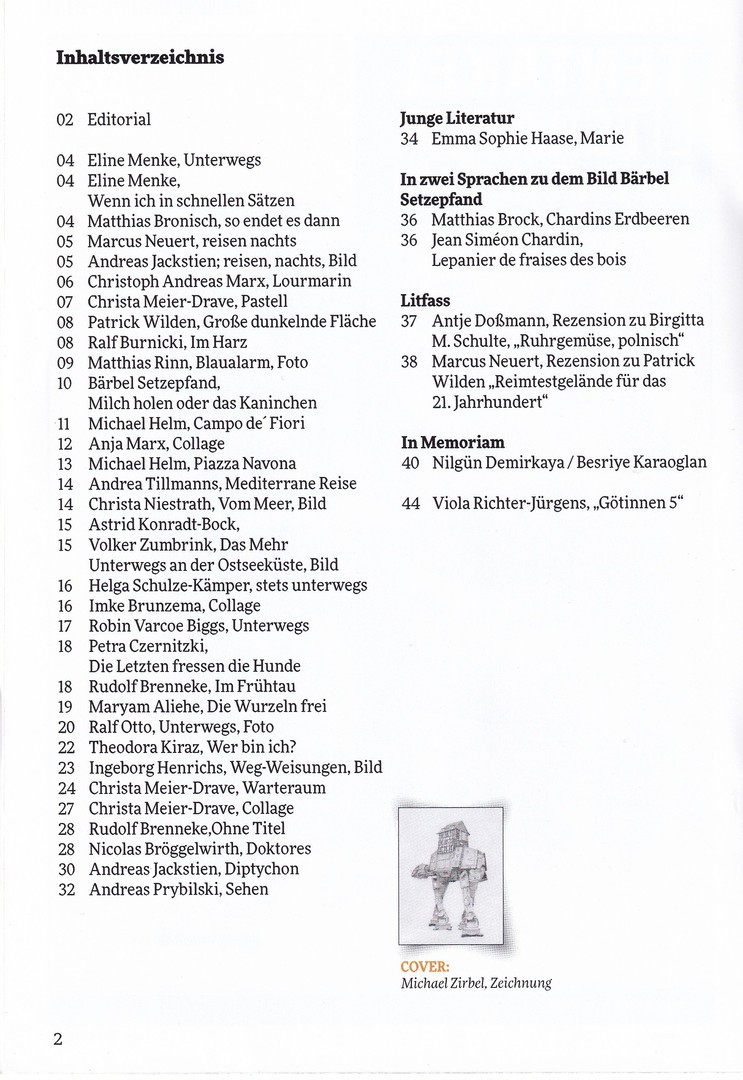 Mehrere Texte sind bitte in einer einzigen Datei zuzusenden (mit Ihrem Namen über jedem Titel). WICHTIG: Auf gar keinen Fall senden Sie uns nur eine PDF-Datei zu, da die Umformatierung fixierter Layouts problematisch ist. Bitte übersenden Sie uns Ihre Texte im Word-Format (z.B. mithilfe kostenloser Textverarbeitungsprogramme wie Open Office, Libre Office usw). Textzusendungen bitte nur von Autorinnen und Autoren mit Lebensbezug zu Ostwestfalen-Lippe und per Mailanhang (Lyrik, Uebersetzungen, Prosa je max. 7000 Zeichen), versehen mit einer Kurzbiografie und Wohnadresse. Bitte übermitteln Sie uns keine Massensendung, sondern beschränken Sie Ihre Textzusendung auf max. 4 Texte. Falls Ihr Text im Literaturmagazin Tentakel veröffentlicht wird, benachrichtigen wir Sie. Um Rechtsstreitigkeiten zu verhindern, senden Sie uns nur solche Texte zu, deren Urheber, bzw. Urheberin Sie sind und über deren Copyright Sie verfügen. Wir freuen uns auf Ihren Text!